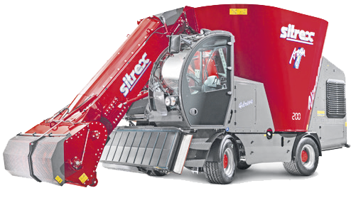 Kaksisuuntainen etukuljetin nousee rehua jaettaessa vaakatasoon kuljettajan nähtäville.